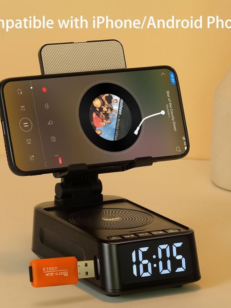 دارای ساعت دیجیتال، آلارم و شارژر بیسیم در یک دستگاه