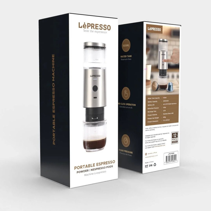 این محصول قابلیت آماده سازی اسپرسو در کمترین زمان ممکن با فشردن یک سوئیچ را دارد، ظرفیت مخزن آب آن ۱۰۰ میلی لیتر است، ظرفیت باتری ۲۰۰۰ میلی آمپر و عمر باتری آن استخراج حداکثر ۷۰ شات اسپرسو می باشد